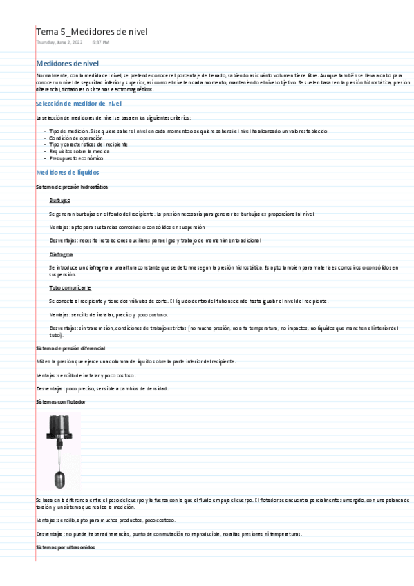He publicado nuevos apuntes de 3º Simulación y Control de Procesos: Temas Instrumentación y medidores
