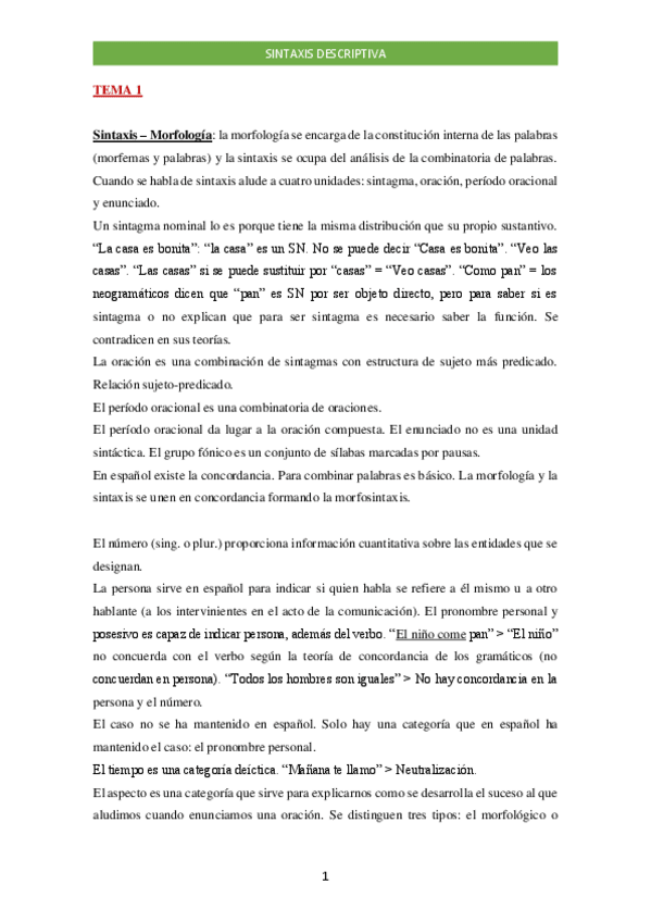 APUNTES COMPLETOS SINTAXIS DESCRIPTIVA