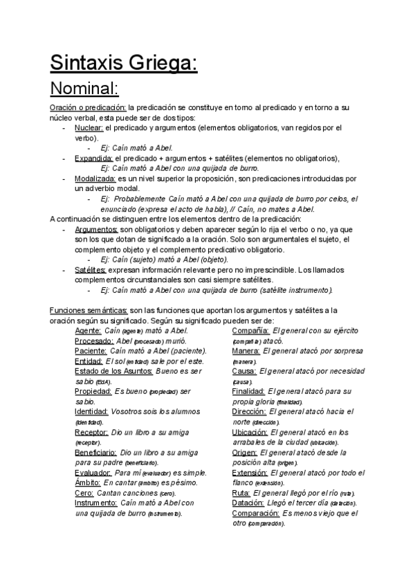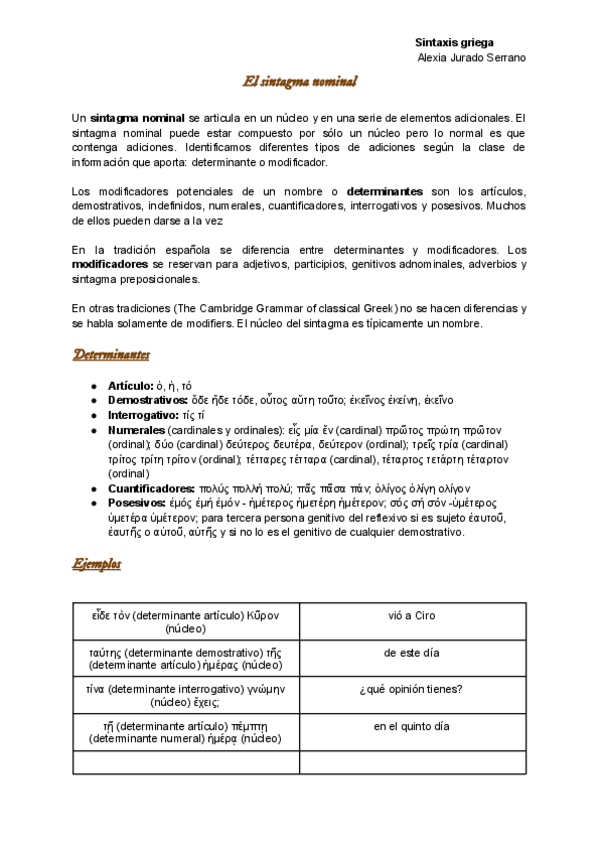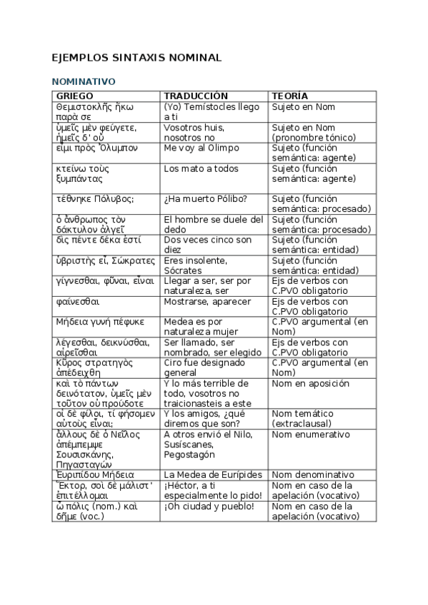 Un documento con todos los ejemplos de sintaxis nominal con Emilia Ruiz, en griego, traducidos al español y con la teoría correspondiente. (Curso 2025-2026)