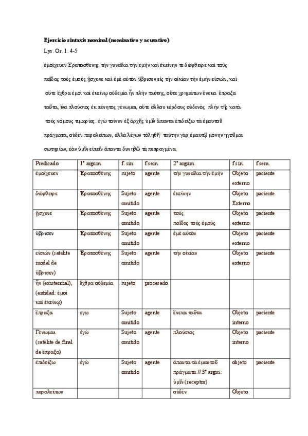 He publicado nuevos apuntes de 2º Sintaxis Griega: Primer ejercicio de sintaxis de los casos: nominativo.pdf