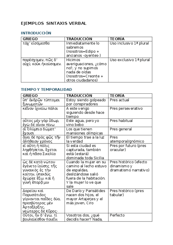 Un documento con todos los ejemplos de sintaxis verbal con Emilia Ruiz, en griego, traducidos al español y con la teoría correspondiente. (Curso 2025-2026)