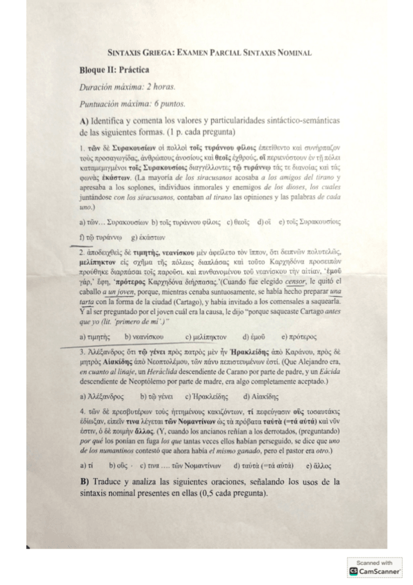 Examen parcial de sintaxis griega nominal (diciembre 25’)