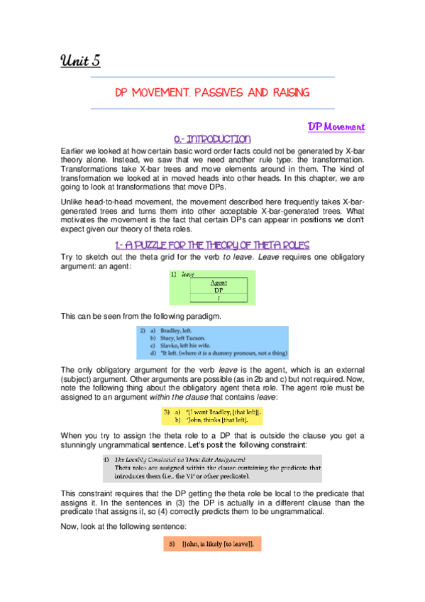 X-Bar Theory: Basic Notions + Extending it to Functional Categories + Theta Theory.
