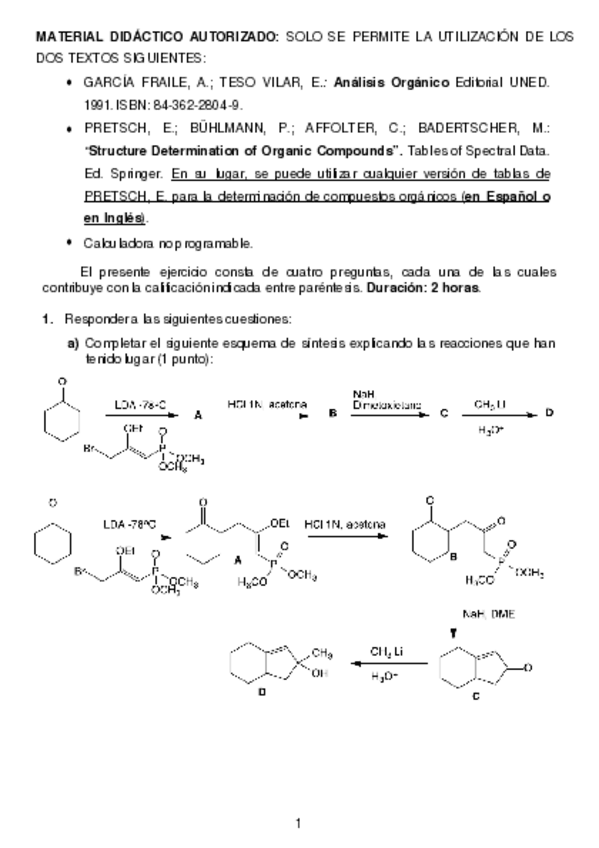 He publicado nuevos examenes de 3º Síntesis Orgánica y Determinación Estructural: 1-Semana-2018.pdf