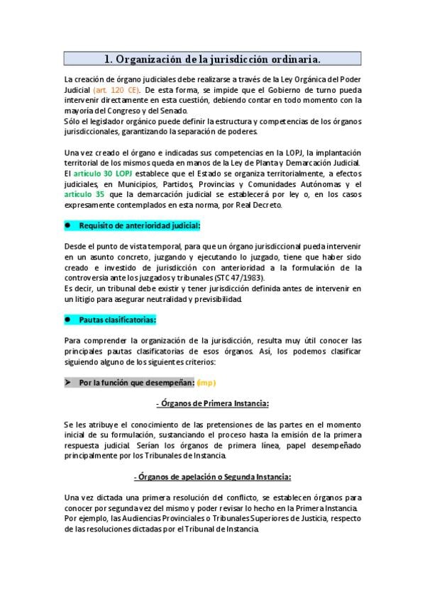Bloque temático I con tema 1 y 2 de Derecho Procesal.