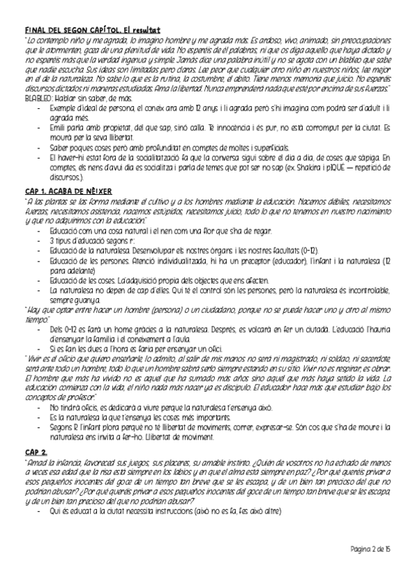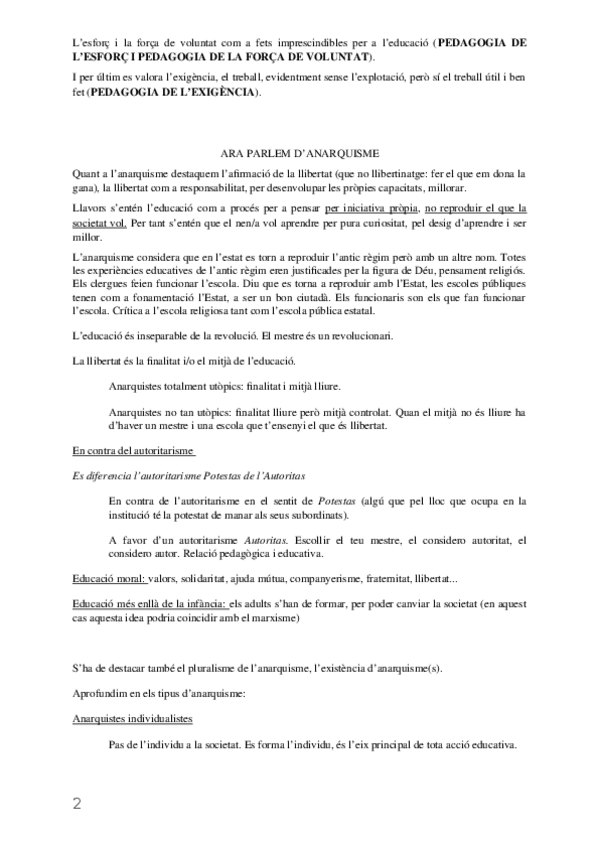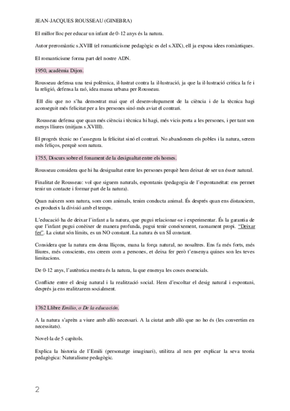 Rousseau, el romanticisme pedagògic i autors romàntics, l'època contemporània, Durkheim, el marxisme, l'anarquisme i l'Escola Nova