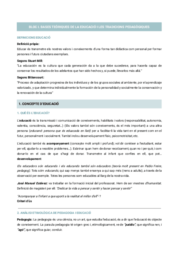 BLOC 1: Sistema educatiu BASES TEÒRIQUES DE L’EDUCACIÓ