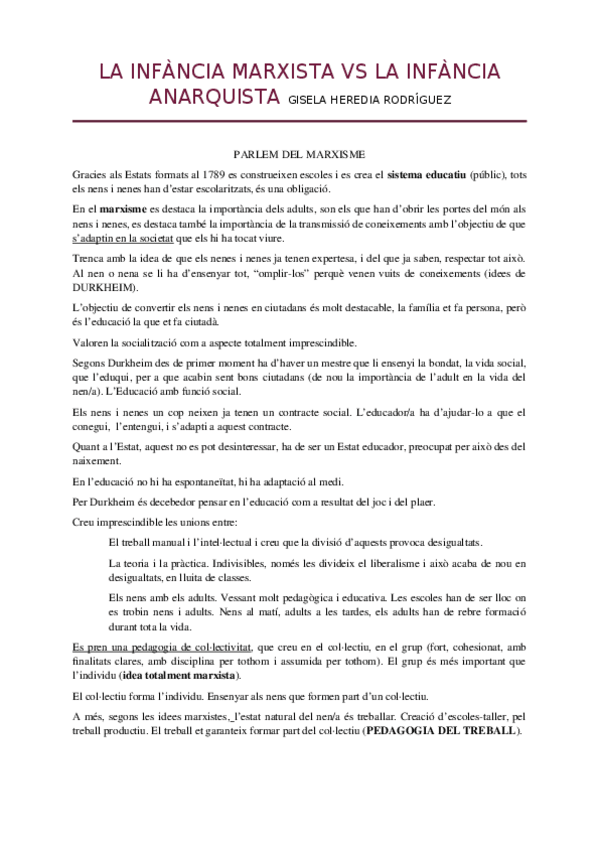 Comparació de la visió de la infància segons el marxisme i l'anarquisme.
