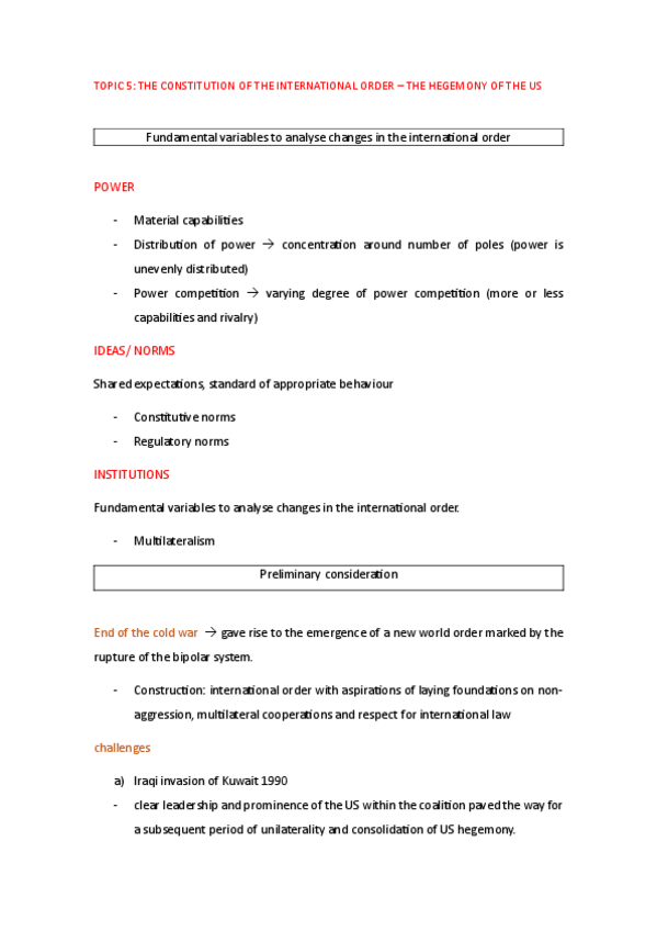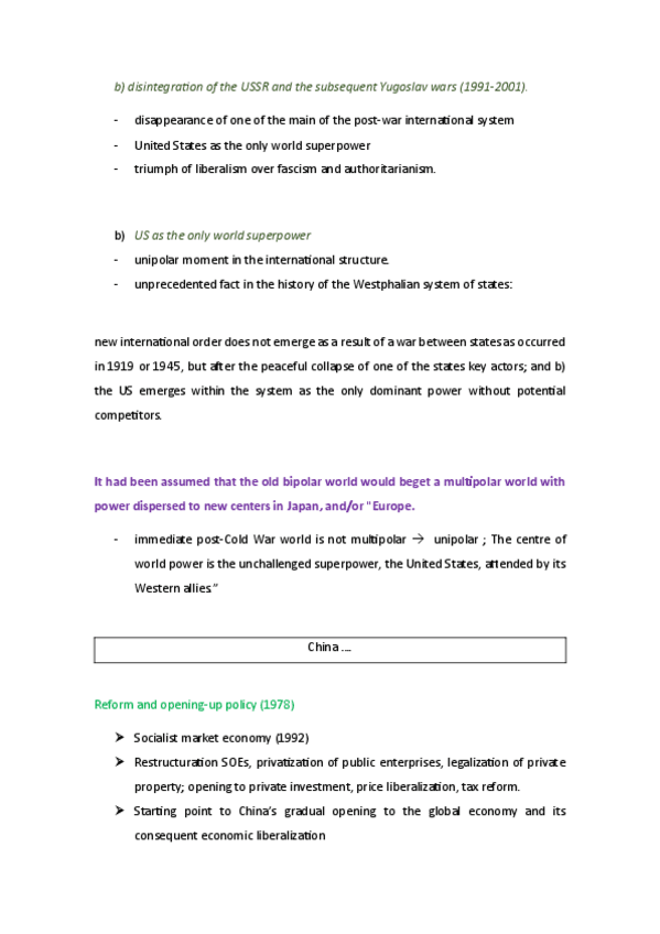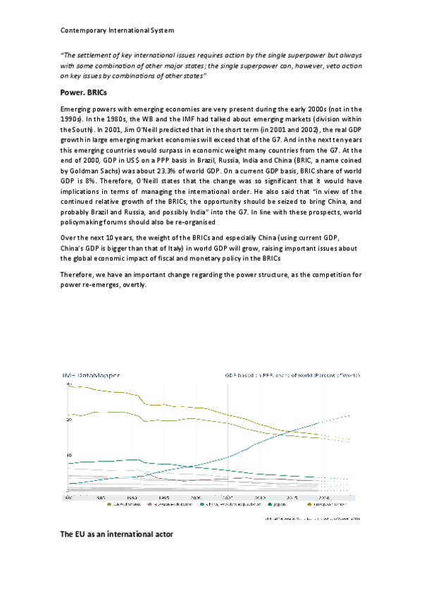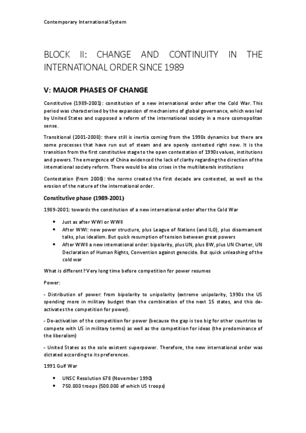 Apuntes tema 1 a introduction to the contemporary international system post Cold War