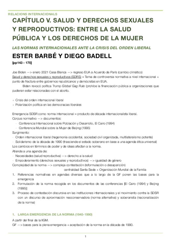 Resumen de la lectura obligatoria del seminario sobre salud y derechos sexuales y reproductivos.