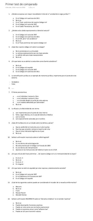He publicado nuevos test de 1º Sistema Jurídicos Contemporáneos (Comparado): Examen 1º Derecho Comparado.pdf