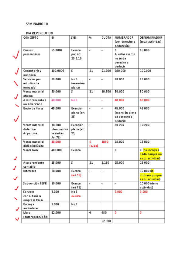 Seminario 10: IVA. Regla de prorrata y operaciones internacionales