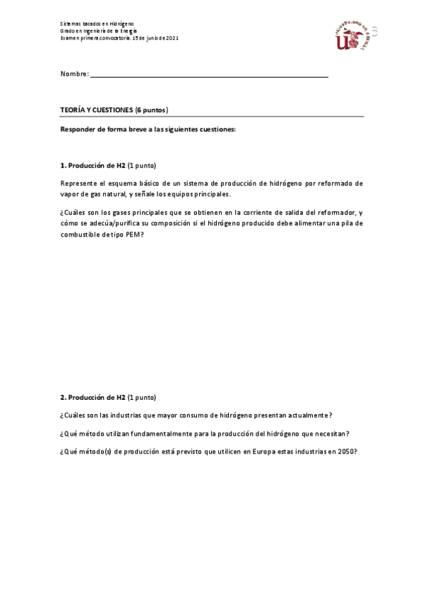 He publicado nuevos apuntes de 4º Sistemas Basados en el Hidrógeno: Preguntas de examen - Sistemas basados en hidrógeno.pdf