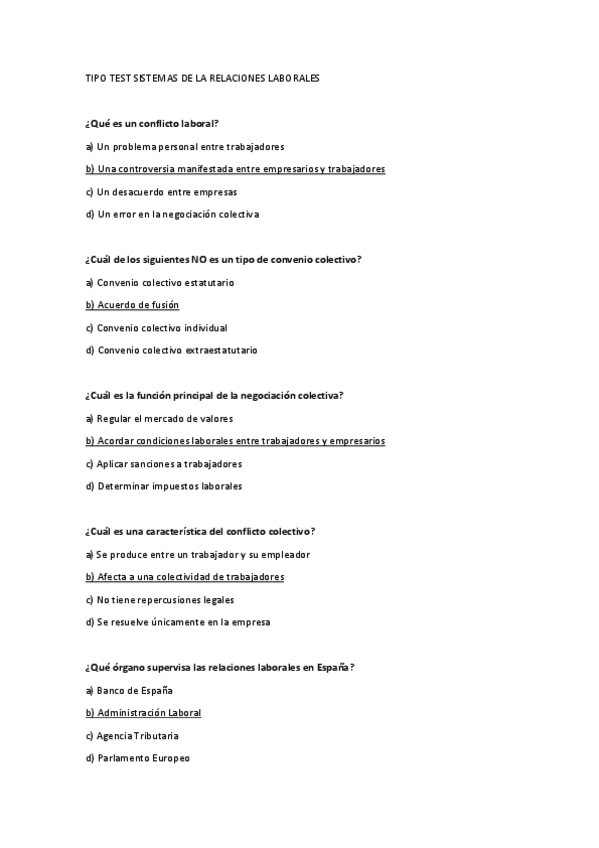 He publicado nuevos apuntes de 4º Sistemas Comparados de Relaciones Laborales: TIPO TEST EXAMEN SISTEMAS