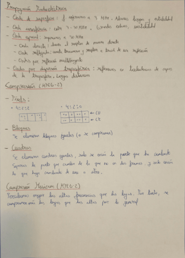Están las cosas más importantes de la teoría, aunque falta fibra óptica (FTTH y los PON). También puede entrar lo de cuando se propaga la señal con lluvia, bosque, ciudad, etc, que tampoco está aquí.