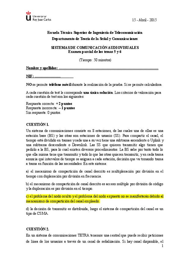 He publicado nuevos examenes de 2º sistemas de comunicación audiovisuales: 1erParcialExtraordinaria2324vFinal.pdf
