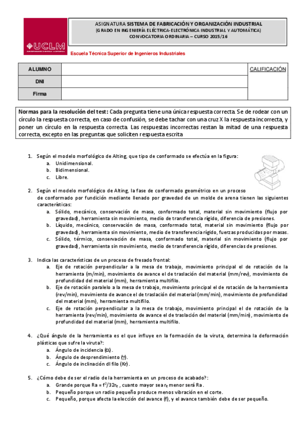 He publicado nuevos examenes de 2º SISTEMAS DE FABRICACIÓN Y ORGANIZACIÓN INDUSTRIAL: Sistemas de fabricacion