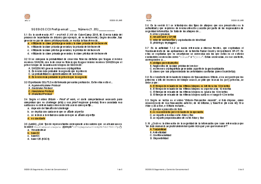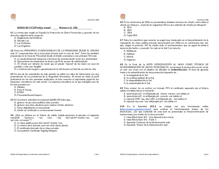 He publicado nuevos examenes de 4º Sistemas de Gestión de Seguridad de Sistemas de Información: Control de Conocimientos