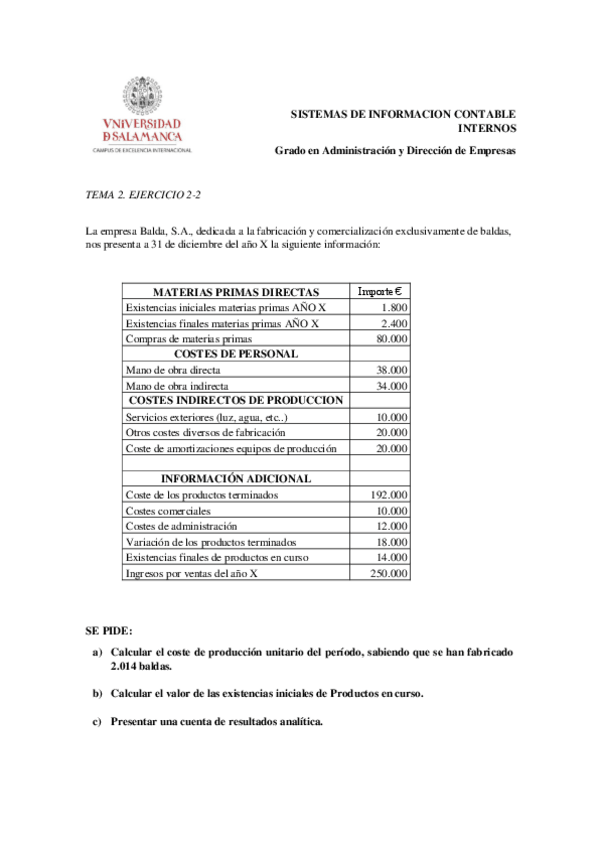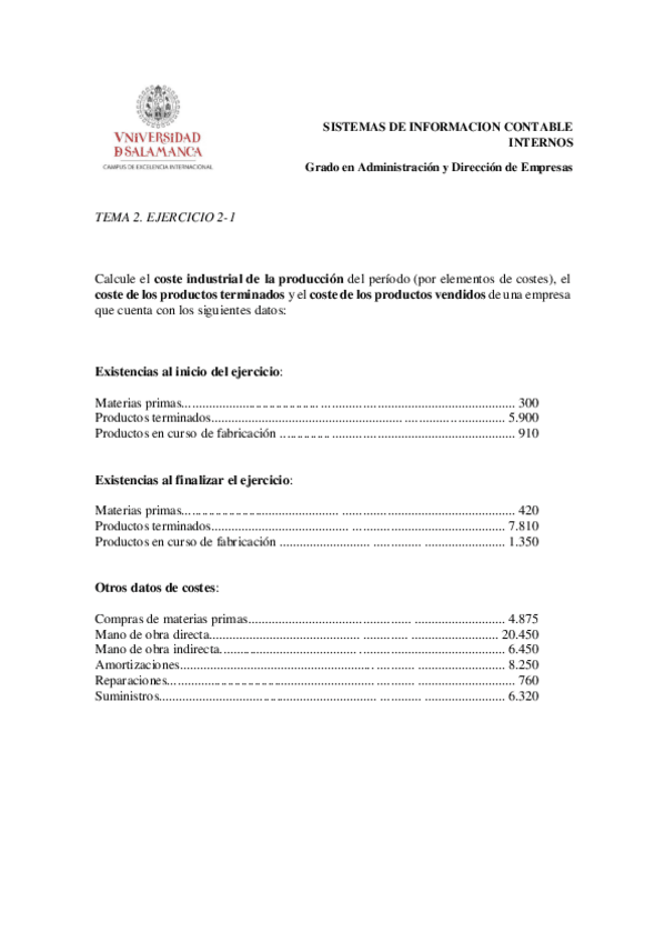 He publicado nuevos ejercicios de 2º Sistemas de Inform. Contab. Int: TEMA 2. EJERCICIO 2.1. COSTES.pdf