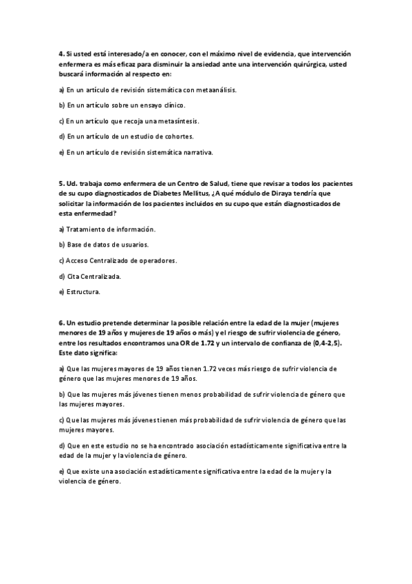 He publicado nuevos examenes de 1º Sistemas de información y análisis de datos en los cuidados de salud: examen-final-preparatorio.pdf