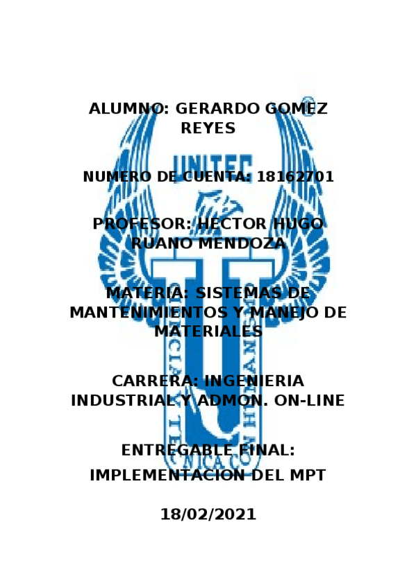 He publicado nuevos apuntes de 8º Sistemas de mantenimiento y manejo de materiales: Entregable-2.docx
