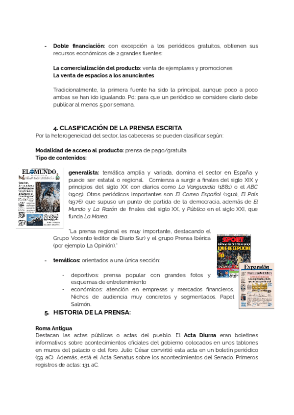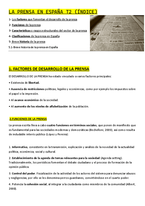 Apuntes sobre el tema 2 de la prensa con fechas señaladas y diferenciadas, primer parcial (los documentos gráficos están en otro documento de mi autoría)