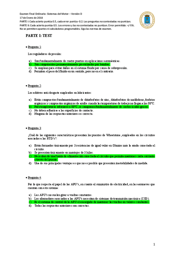 Examen de Sistemas de motor. Enero 2018