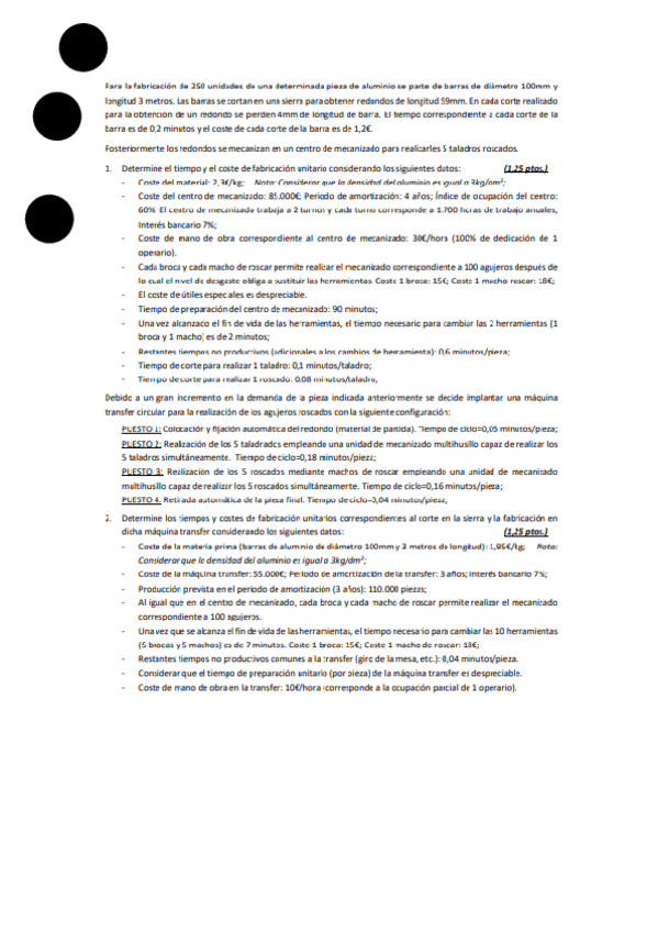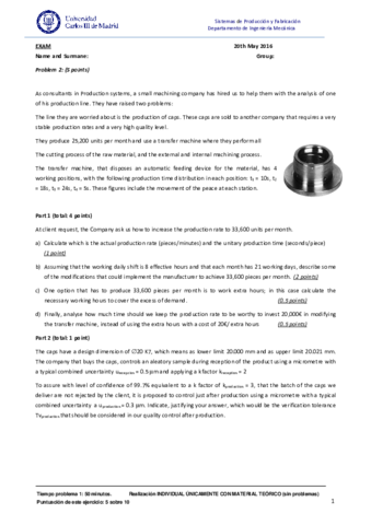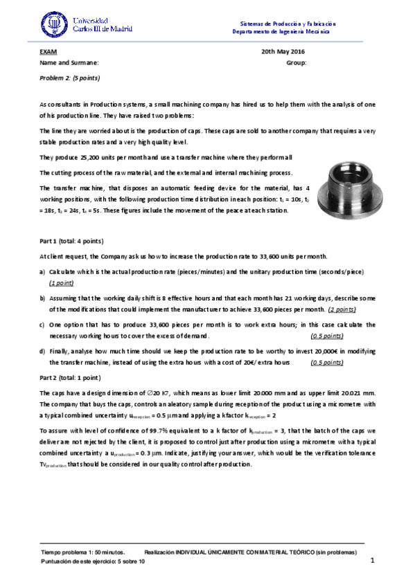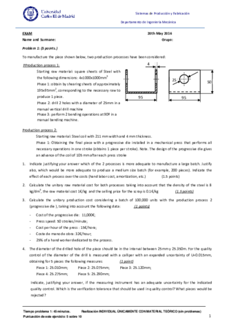 He publicado nuevos examenes de 2º Sistemas de Producción y Fabricación: Manufacturing procedure (examenes solucionados)