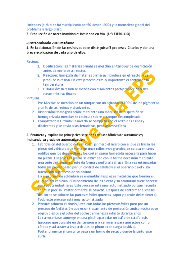 Manufacturing procedure (examenes solucionados)