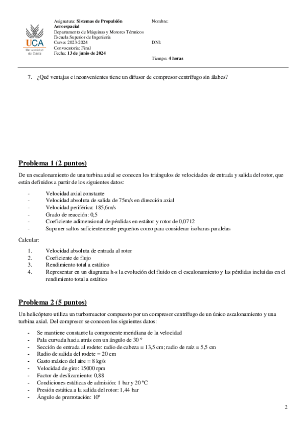 He publicado nuevos examenes de 3º Sistemas de Propulsión Aeroespacia: Teoria-turbomaquinas-junio-2024.pdf