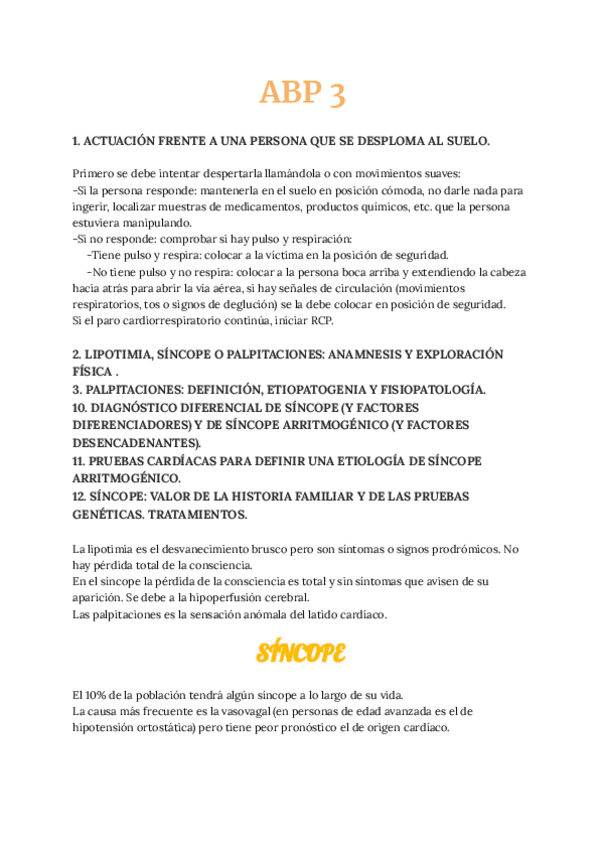 He publicado nuevos apuntes de 3º Sistemas de provisión, procesamiento y eliminación 1. El sistema cardiovascular: SINCOPE.pdf