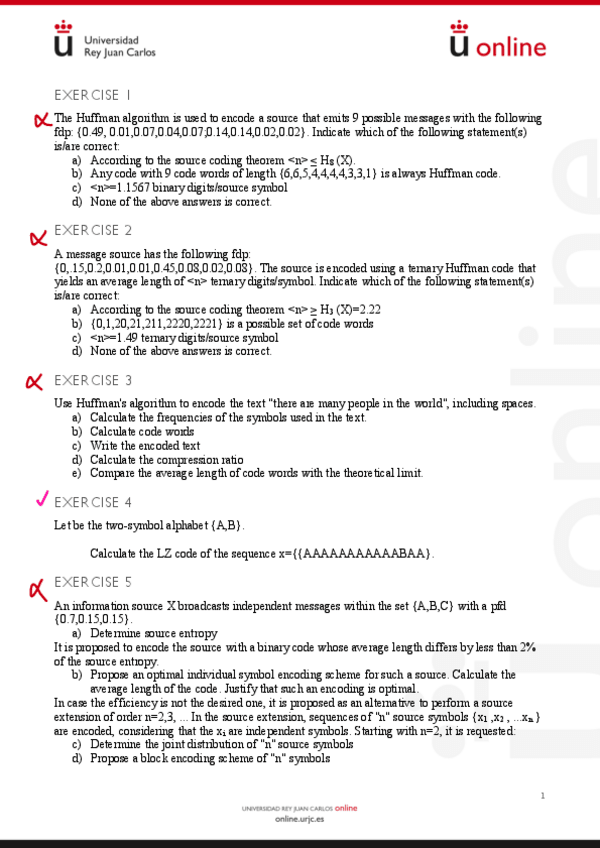 He publicado nuevos apuntes de 3º Sistemas de Transmisión y Codificación de Información Biomédica: Exercises-coding.pdf