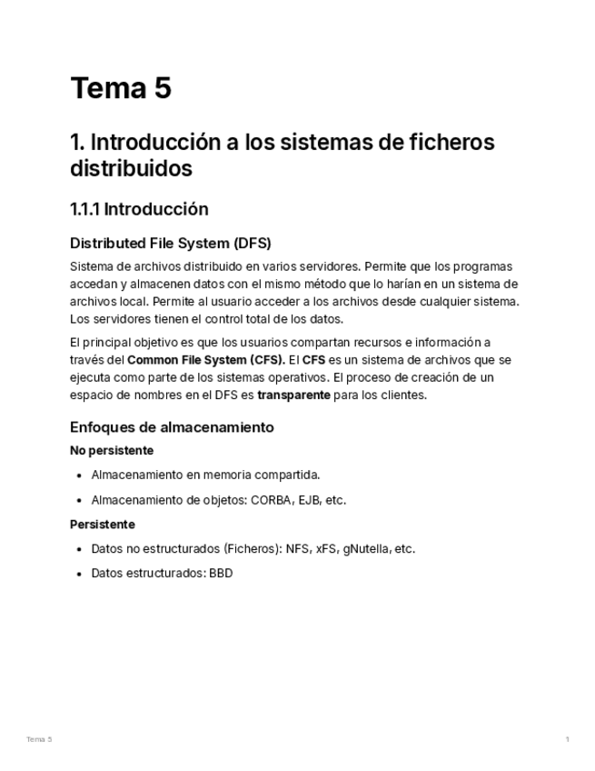 ➡️RESUMEN⬅️ completo del TEMA 1 de Sistemas Distribuidos: Sistemas Distribuidos de Ficheros (DFS)