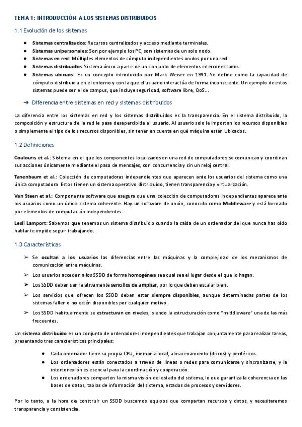 Resumen del Tema 1 de Sistemas Distribuidos explicado de forma clara y tipo examen