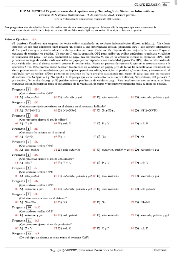 He publicado nuevos examenes de 3º Sistemas Distribuidos: Exámenes 2024