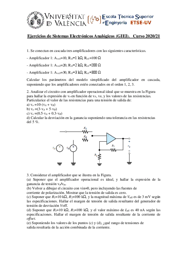 He publicado nuevos ejercicios de 3º Sistemas Electrónicos Analógicos: Problemas.pdf