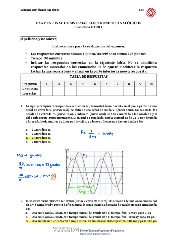He publicado nuevos examenes de 3º Sistemas Electrónicos Analógicos: Examen Final (LAB y TEO) Soluciones 2021