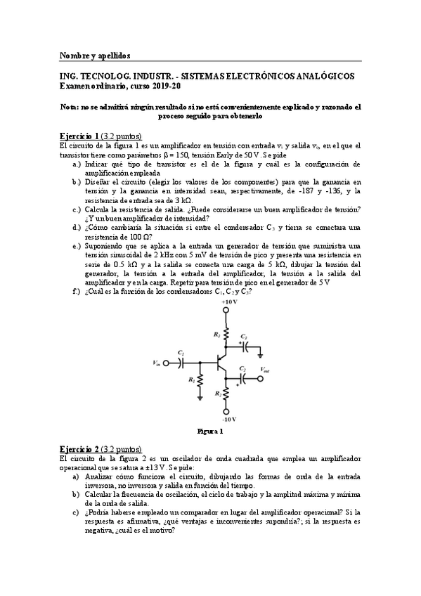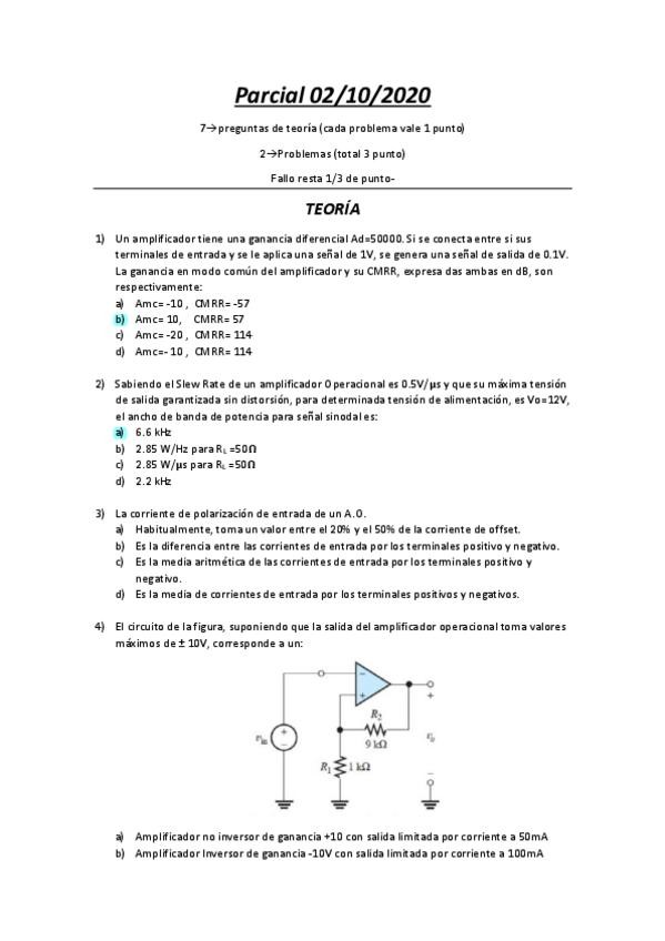 He publicado nuevos examenes de 3º Sistemas Electrónicos Analógicos: Parcial-02-10-2020.pdf