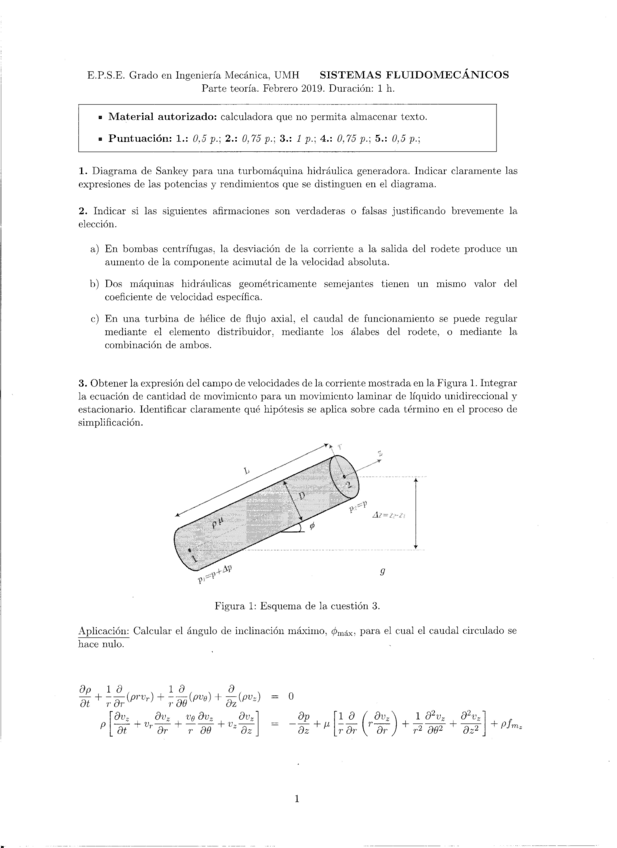 He publicado nuevos examenes de 3º Sistemas Fluidomecánicos: Febrero-2019.pdf