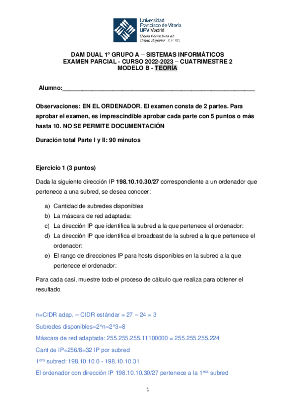 Examen parcial modelo B de Sistemas Informáticos con soluciones.