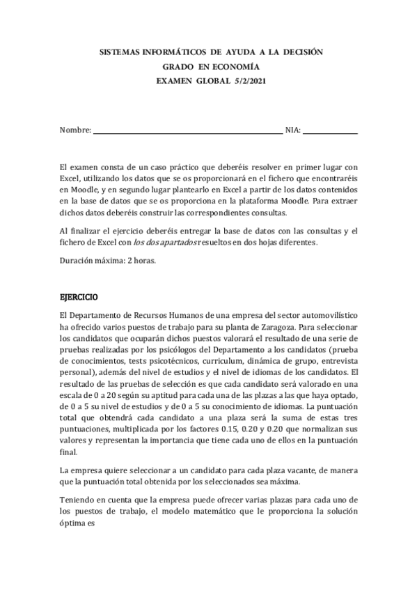 He publicado nuevos examenes de 4º Sistemas informáticos de ayuda a la decisión: examen-GECO.pdf