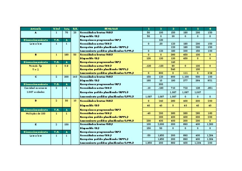 He publicado nuevos apuntes de 2º Sistemas Integrados de Producción: Ejercicios de clase en excel