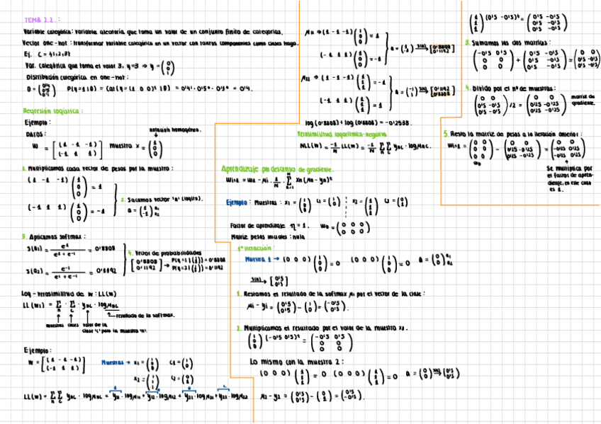 Chuleta para el examen. Codigo Perceptron, Ejercicio Regresion logistica ejemplo paso por paso, formulas y puntos de teoria importantes