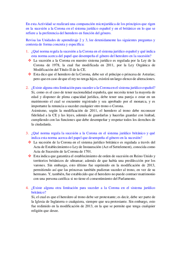 He publicado nuevos ejercicios de 2º Sistemas Jurídicos Comparados: Comparacion-de-las-normas-que-regulan-la-sucesion-a-la-Corona-en-referencia-al-genero-del-heredero-en-Espana-y-en-el-Reino-Unido.pdf