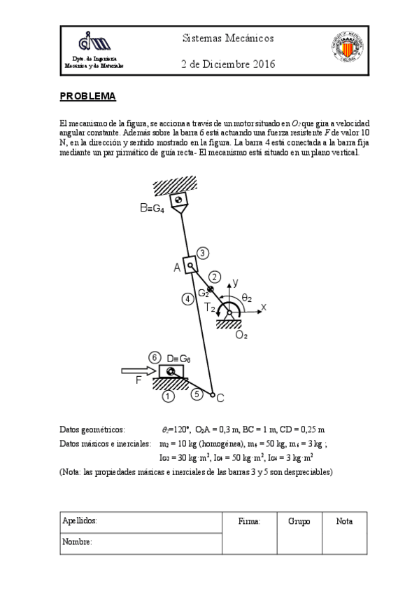 He publicado nuevos examenes de 3º Sistemas Mecánicos y Resistencia de Materiales: Ejercicio-2-examen.pdf