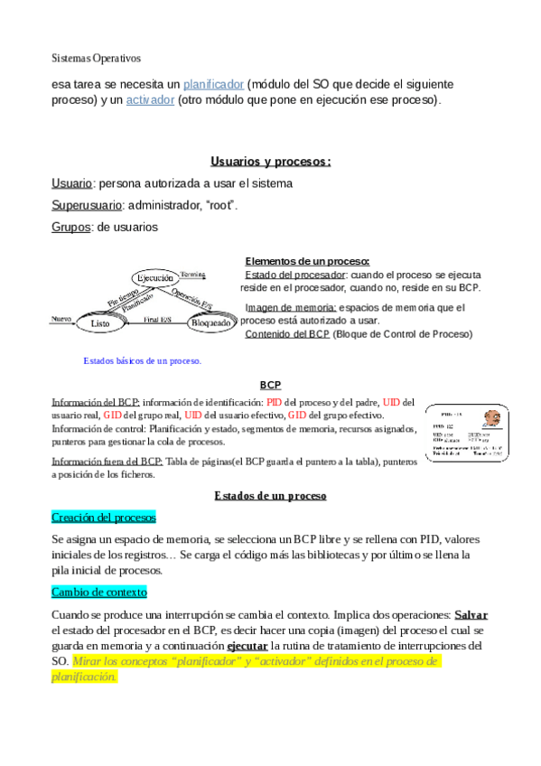 He publicado nuevos apuntes de 1º Sistemas Operativos: (SO)(1) INTRO + GESTIÓN DE PROCESOS - resumen.pdf