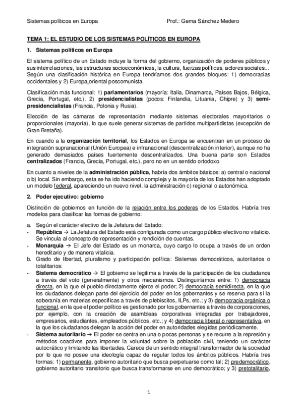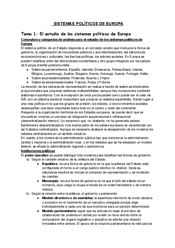 APUNTES SISTEMA POLITICO DE EUROPA