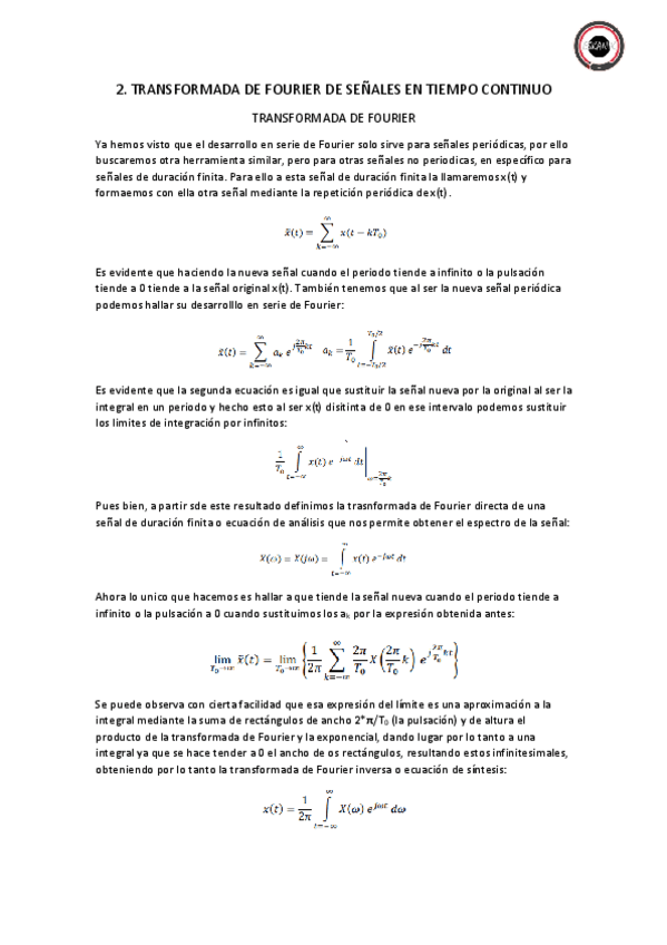 He publicado nuevos apuntes de 2º Sistemas y Señales: Señales y sistemas-tema 2 transformada de Fourier de señales en tiempo continuo--por partes+completo