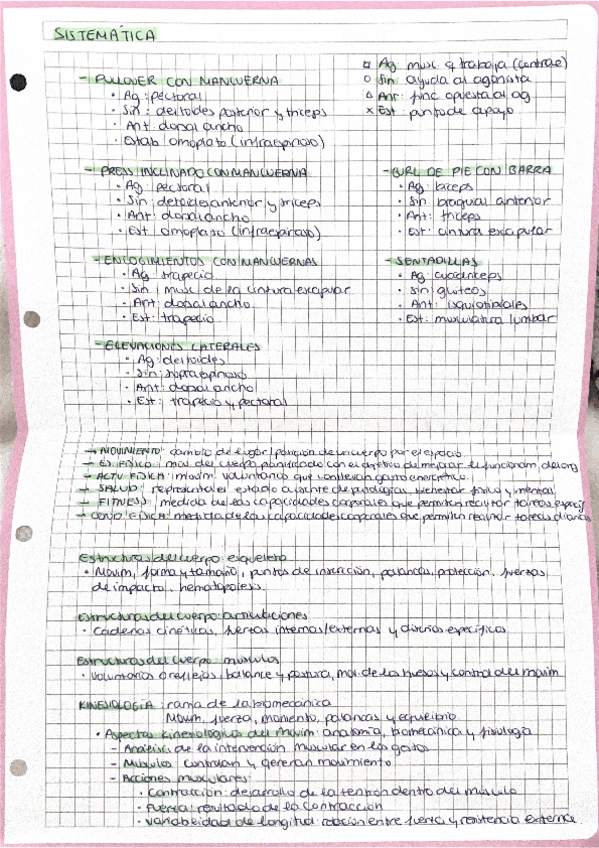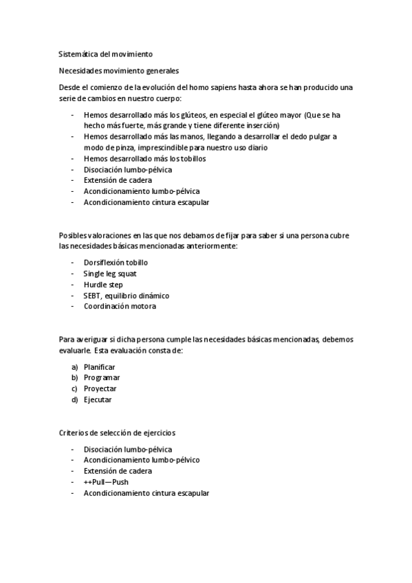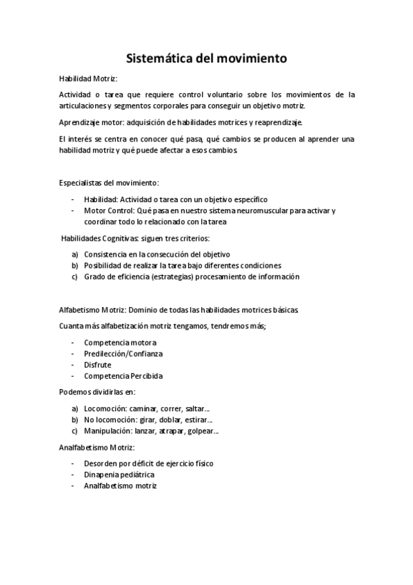 Apuntes examen sistematica del movimiento