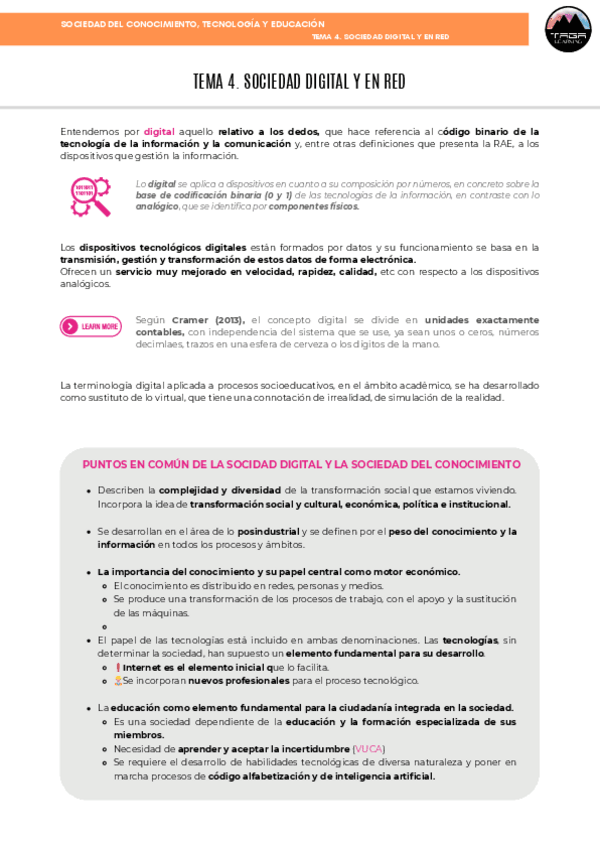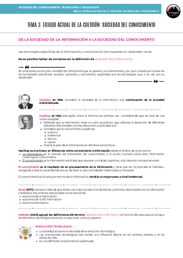 TEMA 2 - Sociedad del conocimiento, tecnología y Educación - PEDAGOGÍA - EDUC. SOCIAL. UNED